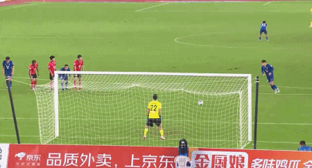 第70分钟,吴雨成禁区前任意球直接吊门,陆天宇单掌将球托出横梁