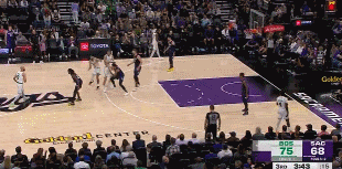 (塔图姆三分命中同时遭遇小萨博尼斯一级恶意犯规,塔图姆带伤坚持加罚命中后绿军还有球权,波尔津吉斯三分再中)