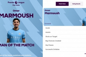 本场比赛马尔穆什上半场打进一球,还有3次射正,赛后他也以78.4%的得票率当选英超官方球迷票选全场最佳球员。