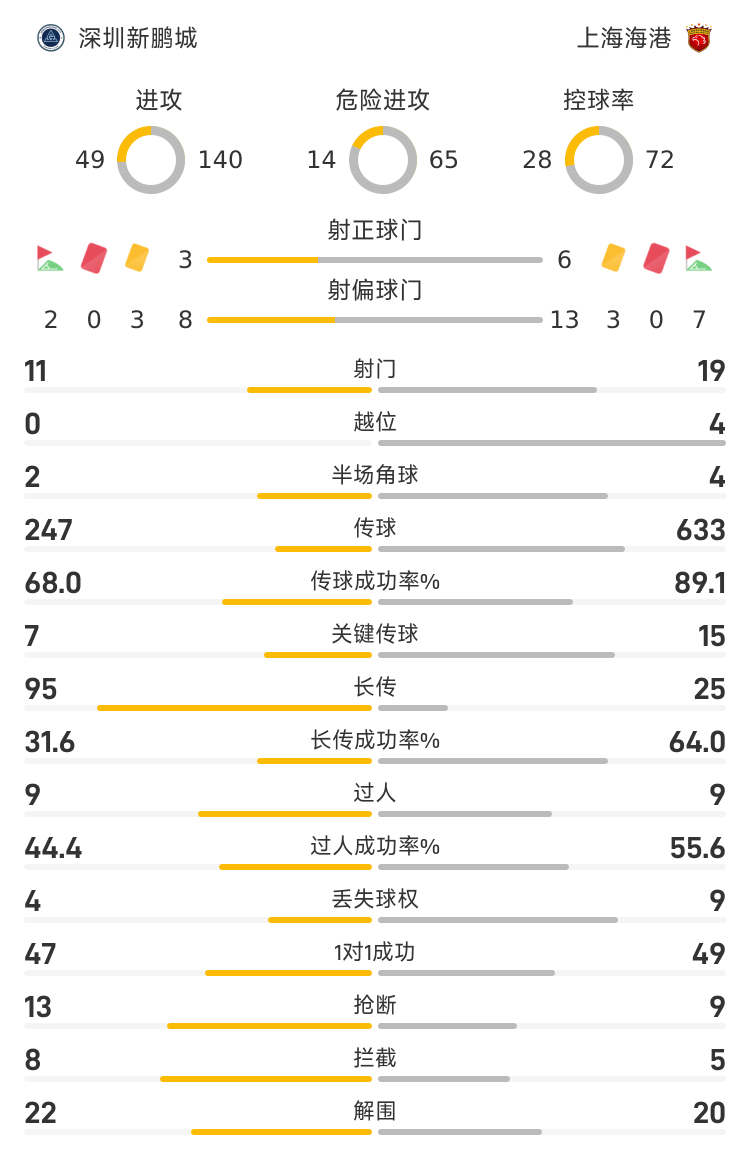 深圳新鹏城首发阵容:1-季家葆;20-杜加利奇;5-胡睿宝;29-王峤;16-李智;2-张卫(68’23-杨一鸣);12-张晓彬(73’28-张煜东);11-加西亚(68’34-夏合扎提);36-卡尔采夫;17-李宁(62’4-姜至鹏);19-安永佳(73’9-莱昂索)