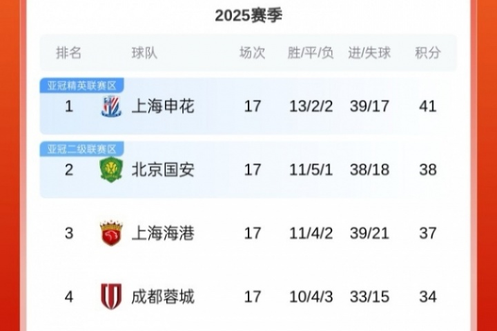 体育资讯07月19日讯 今晚榜首大战国安1-3不敌申花,吃到本赛季联赛首场败仗,最新中超积分榜如图。