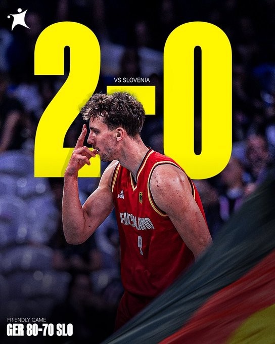 8月11日讯 今天凌晨,斯洛文尼亚和德国再次进行了一场热身赛,本场比赛东契奇缺阵,斯诺文尼亚70-80再度输给德国。